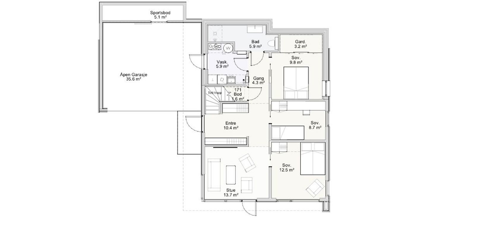 Kjøkken og stue oppe elle nede? Du velger.