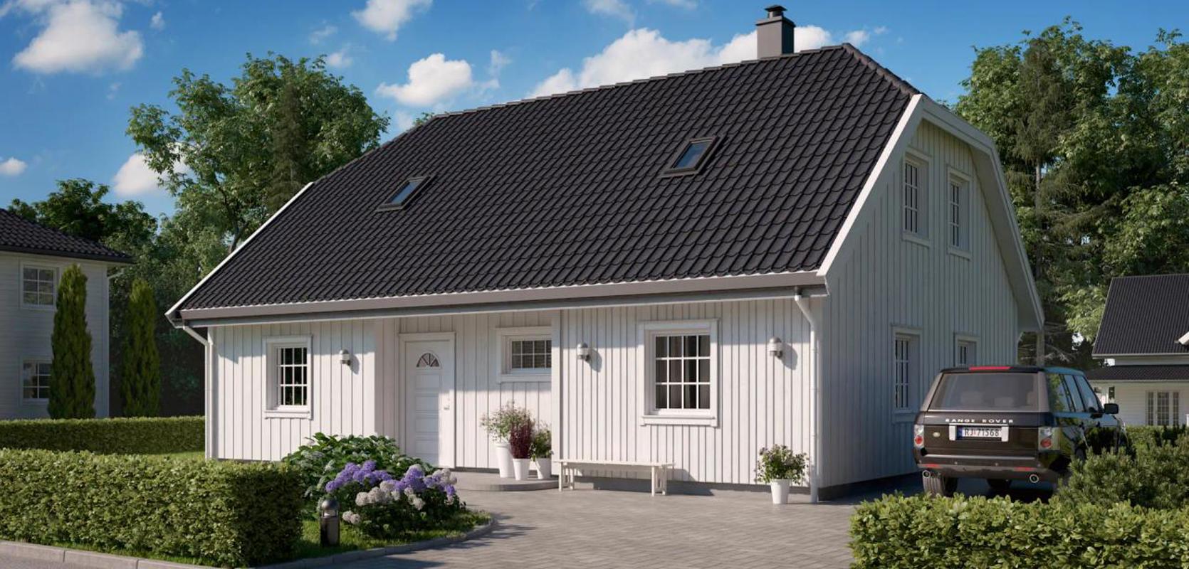 Med sine 150 kvadratmeter har huset en svært praktisk planløsning, med fire soverom, to bad og en romslig hall. Det er rikelig med plass til en stor familie. Gjennom årene har huset blitt forbedret basert på verdifulle råd og tilbakemeldinger fra våre kunder.