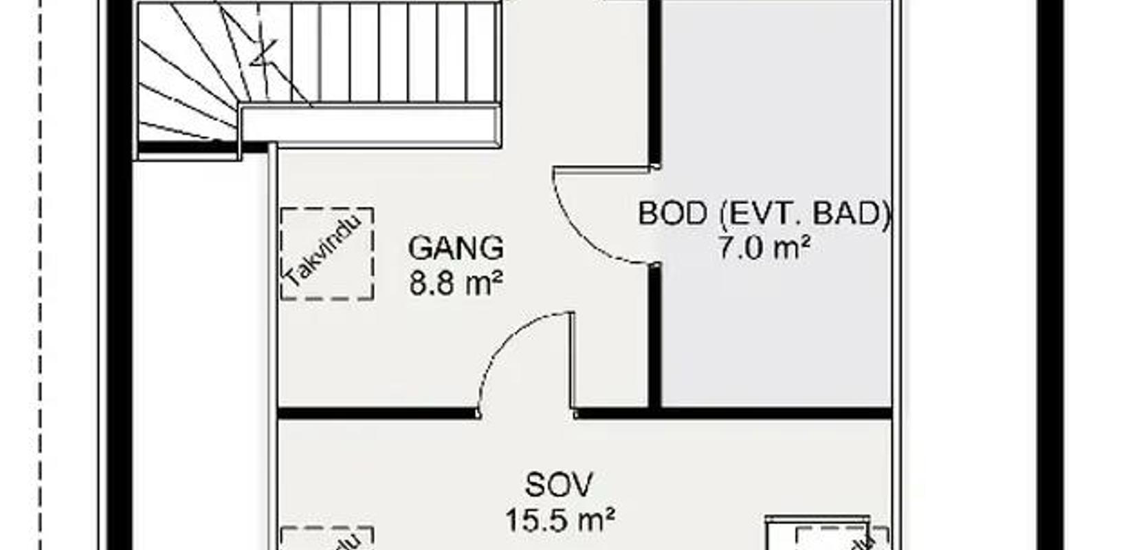 Loftsetasjen har to store soverom og en romslig bod som gir deg god lagringsplass. Huset har også flere boder som gir deg ekstra oppbevaringsmuligheter. Hvis du ønsker, kan du innrede den ene boden til et stort og flott bad.
