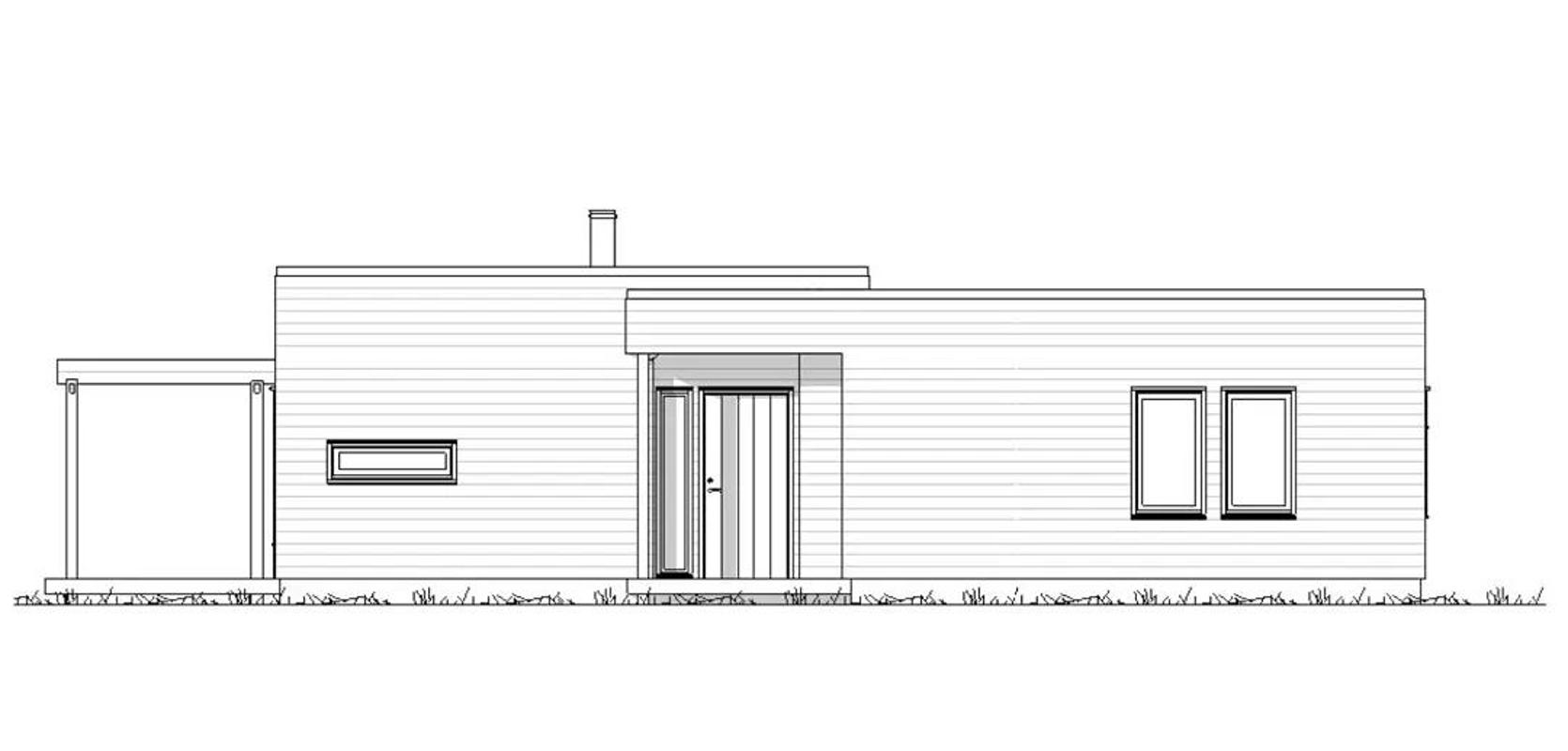 Risør hytta har et solid overbygd inngangsparti som gir tilgang til både en utebod og hovedinngangen. Uteboden er fullt isolert og har en bred døråpning, som gir enkel tilgang til utstyr som ski, pulker, sykler, og mer. Ved siden av hoveddøren er det lysfelt for gjennomgående gløtt inn og ut mot atrium og uteplassen på andre siden av hytta.